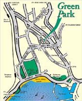 From the M5, follow signs for A380 to Torquay. At Torre Railway station ignore the sign for Harbour and Seafront and keep in the left-hand lane going through that set of traffic lights and on to the next where South Devon College is on your left. Take the right-hand lane to the next lights, turning right, then keep to the left-hand lane with the Police Station to your right. Continue down South Street to yet another set of lights. Turn left here into Lucius Street and follow the road until traffic lights at the distinctive Central Church. Go straight on through these lights, passing the church and take the first left after the church into Morgan Avenue, where Green Park will be found at the top on the right. Click on this map for a larger view |